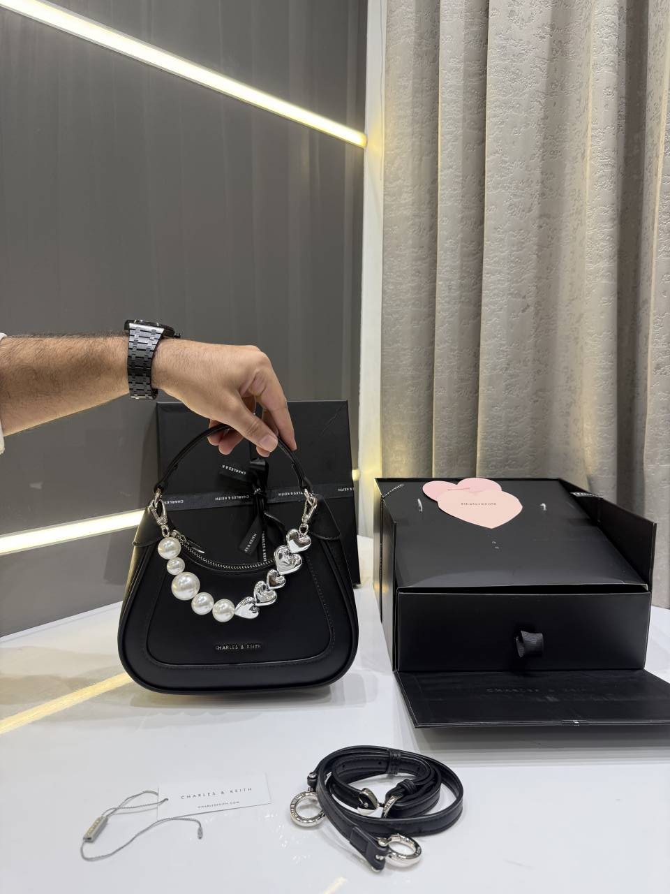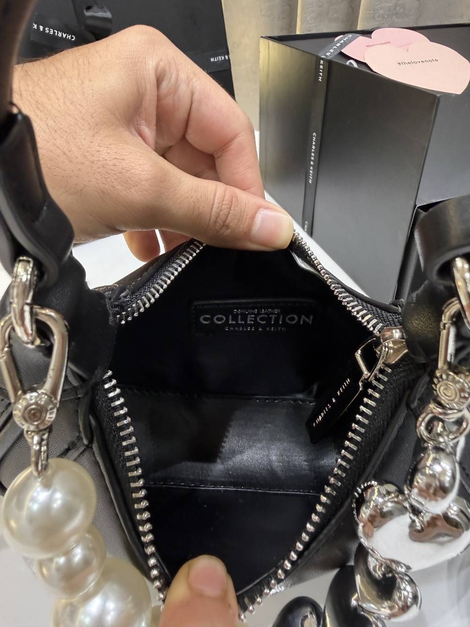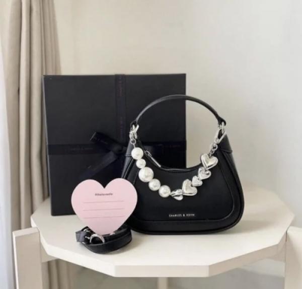 CHARLE.S KEITH BLACK HEART CHAIN BAG PREMIUM WITH GIFT BOX